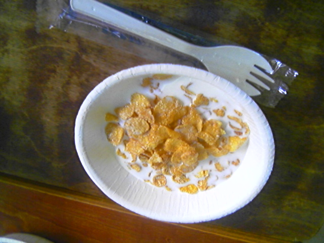 さて、今日は天気予報で(最高気温)21℃とか言ってた癖になんだかみょうに暖かかったので、羽音さんと組んで昼食にコーンフレーク食べました。