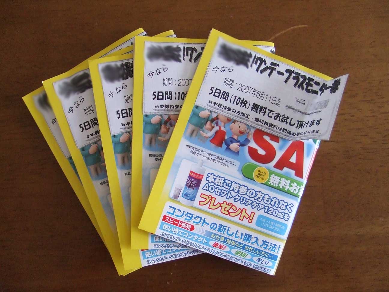 さて、上の画像は皆さんおなじみコンタクトのアイシティのちらしです。駅付近を歩いていたらもらいました。一度に5枚。2枚なら目をつぶるが流石におねえさんバイトサボりすぎなんでないの?